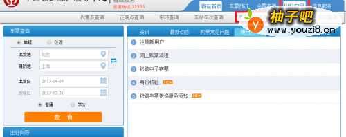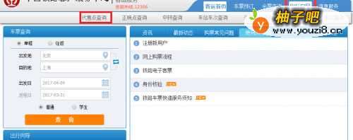 2单击顶部的“出行向导”按钮,选择其中的“代售点查询”。互良