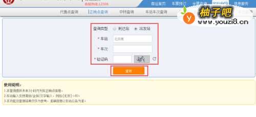 3在“正晚点查询”页面,选择好“查询类型”,然后输入“车站”、“车次”以及“验证码”,然后单击“查询”按钮,即可查到当前车次的正晚点情况。