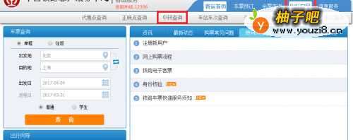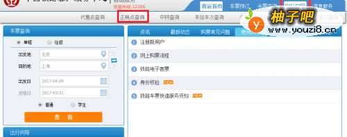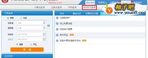 2单击顶部的“出行向导”按钮,选择其中的“车次查询”。