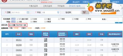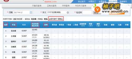 4在这里,你可以查询到该次列车途径车站的“数量”,“车站”、“出发时间和到达时间”以及“历时”信息。
