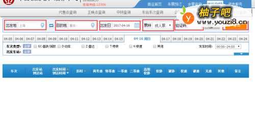 4在这里,你可以查询到从出发地到目的地的列车“数量”、各个列车的“车次”、“出发站和到达站”、“出发时间和到达时间”、“历时”以及各类座位的公布票价信息。