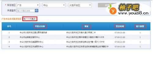 4在这里,你可以查询到你所在地区的代售点的数量、具体名称、地址、营业时间以及营业窗口的数量。