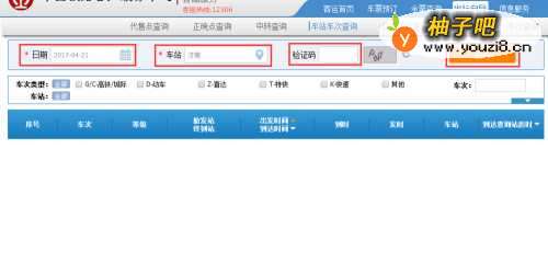3在“车站车次查询”页面,选择好“日期”、“车站”以及“验证码”,然后单击“查询”按钮,即可查询到该地车站车次的相关情况。