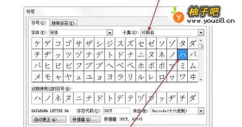 5则片假名ハ就插入到文档中的对应位置了。然后关闭“符号”对话框。