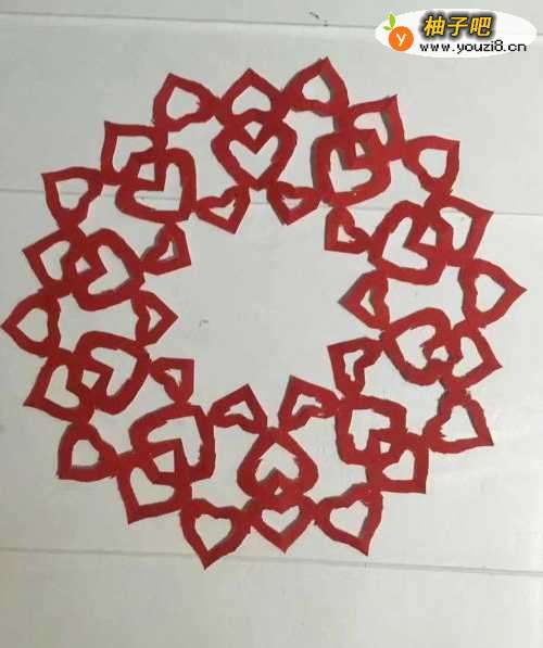 一副漂亮的心连心团花图案 怎样用彩纸裁剪