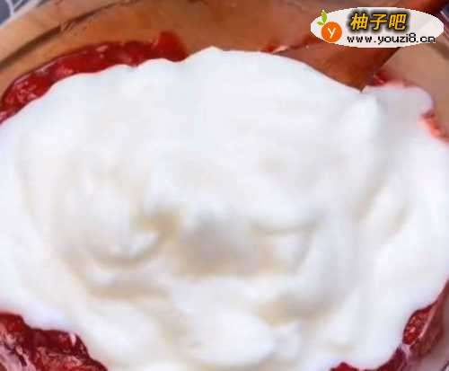 3中小火慢熬,熬至浓稠。倒入碗中,加入一盒酸奶。搅拌均匀。见下图