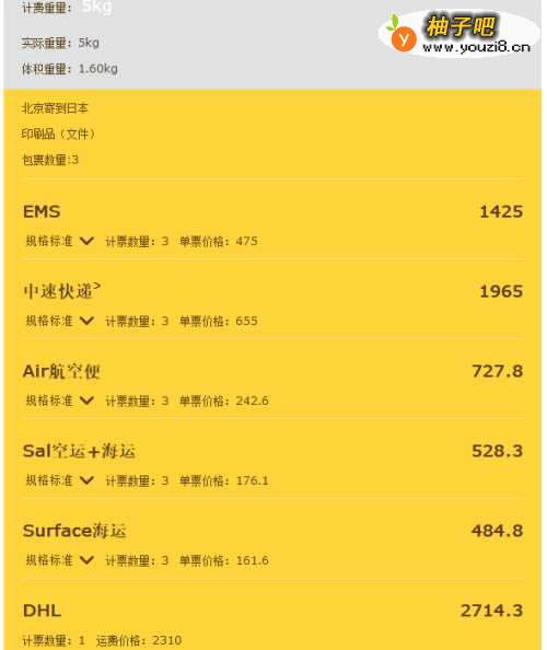 1. 选择运输方式(方法一):这种是最传统的方法,依次百度,EMS,UPS,DHL,Fedex等,这几个都是国际常用的快递运输企业(方式),还可以百度邮政航空、海运、中速快递、顺丰快递等,每个快递企业都有自己的计算价格的查询方式,和包装标准。你会发现在每个这种方法虽然可行,但耗时又难找,而且不好比较,有的快递方式还没有计算页面。