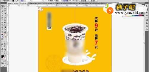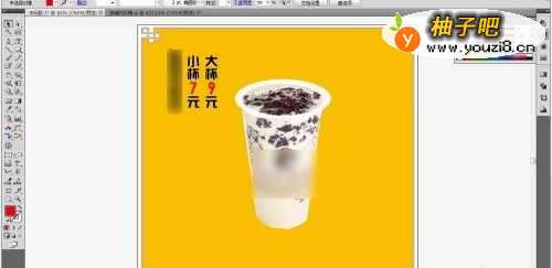 4采用置入命令,放入没有背景的美食的画面,白色的美食与橙色的背景互相烘托出来,让人感觉非常的震撼,非常的具有美感。把图像的位置调整好了以后,再进行文字部份的处理。