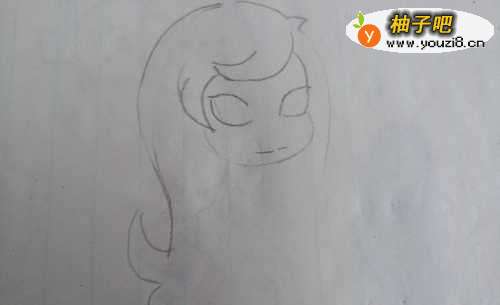 首先准备好绘画工具,先在纸上画上美人鱼的头部大体轮廓。