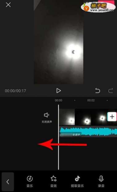 在剪映上为视频添加了抖音音乐以后,拖动整个编辑区向左移动,当时间线与音乐结尾位置重合后停止拖动,然后为视频第二次、第三次......第n次添加抖音音乐,实现循环播放的目的。