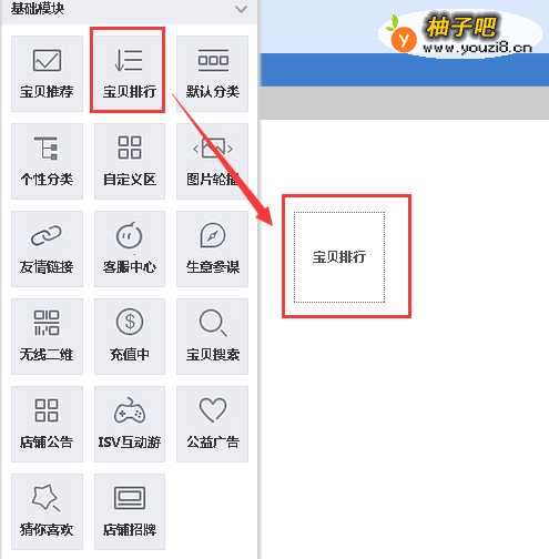 3可以用鼠标按左侧的一个模块不动移动鼠标到店铺主页面的某个位置,其他模块也可以根据自己的需要调整。