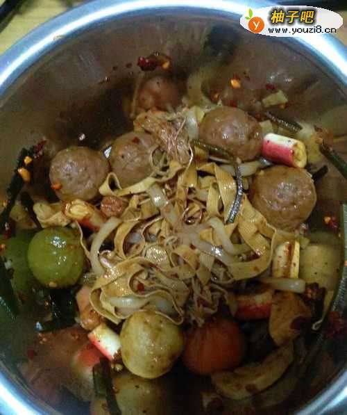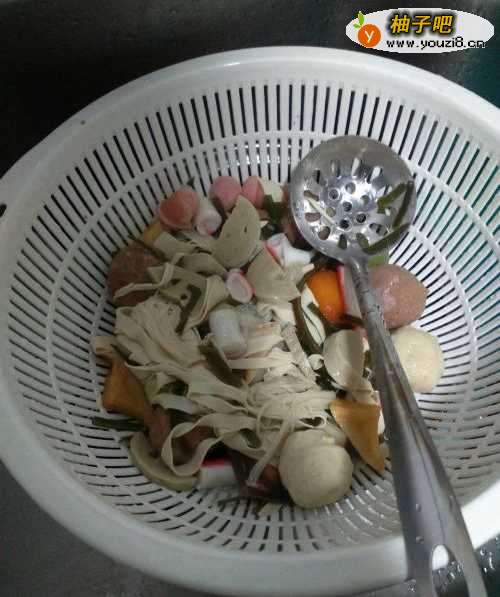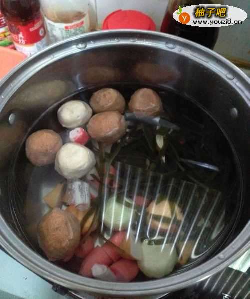 2将各类丸子类原料及不太好熟的原料放入锅中加水煮熟(水量没有过多要求 能煮熟就行)