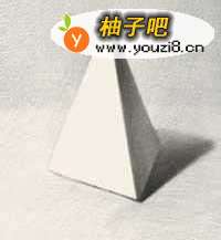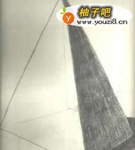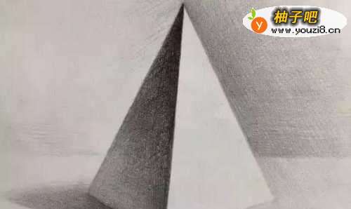 找到四棱锥的最大转折处,就是它的明暗交界线,颜色最深,区分面与面的对比,用软碳笔铺一层暗部和投影,好主意统一性,同时在分开投影和物体的区别,注意投影的前实后虚。
