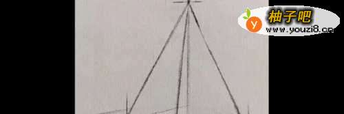 观察四凌锥的大概长的高度和宽度,如果写生的话,为了准确可以用炭笔比一下。也可以借助竖着的长方体辅助线打形,注意近大远小,同时透视要准确。