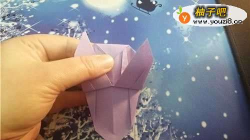 6把上面的角向下折,把下面的角向上折。翻到正面,我们给马头上画上眼睛就可以了。
