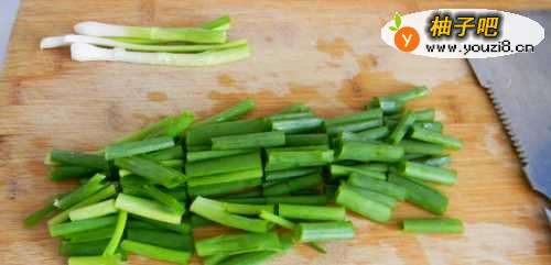 小葱洗净,切掉葱白部分不要,绿叶部分切成寸段