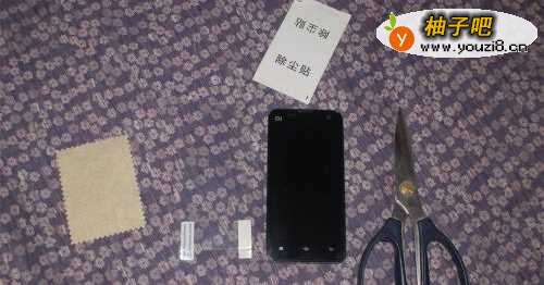 手机一台,对应的手机型号贴膜一张,擦布一张,剪刀一把,最重要的“除尘贴”一张。