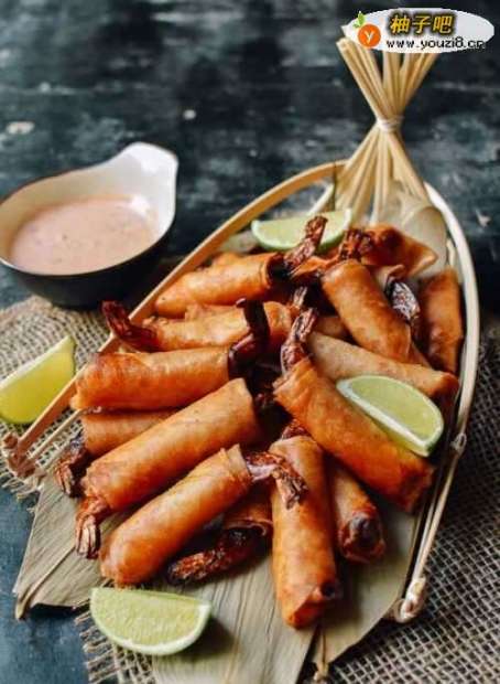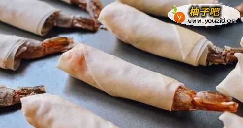 5用蛋液和春卷皮粘合,油温120℃炸至金黄,