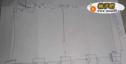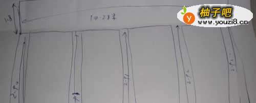 2拍完之后,就开始量店面的数据了。先把纸折一下,(这样做是为了好画),有几间店面就折成几等份。