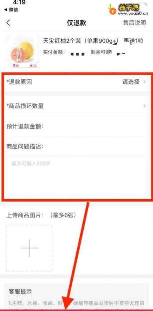5第五步:选择“仅退款/退货退款&退款原因”,此处以“仅退款”为例。