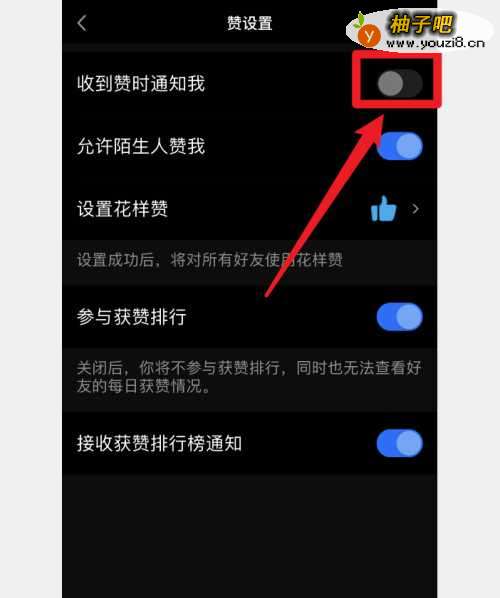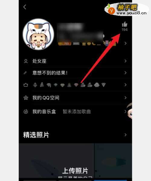 点击打开头像,再次点击头像,点击选择点赞数,点击打开设置,点击关闭收到赞时通知我功能。