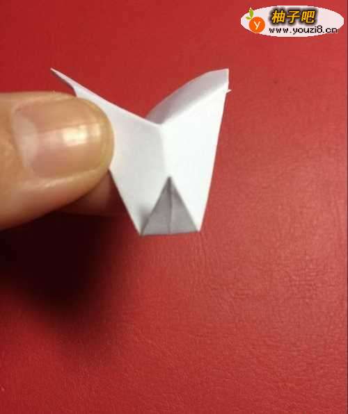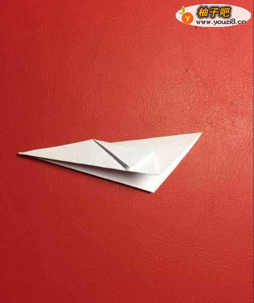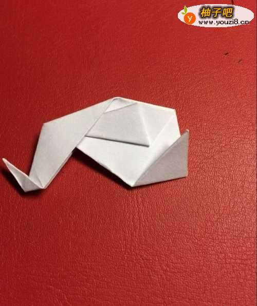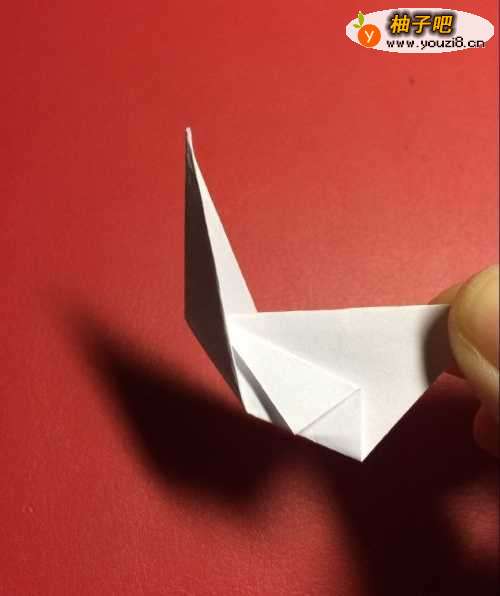 6然后,倒过来把尾巴处向下折叠一次,再向上折叠一下。尾巴就折叠好了。