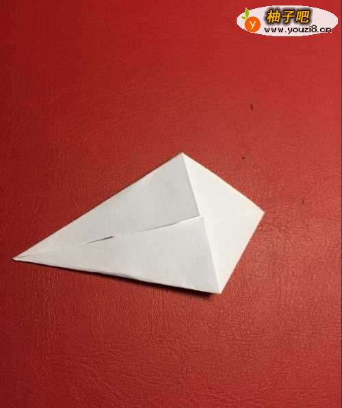 3折叠好后沿着中线向下折叠。再把左边1/3处倾斜折叠处折痕。