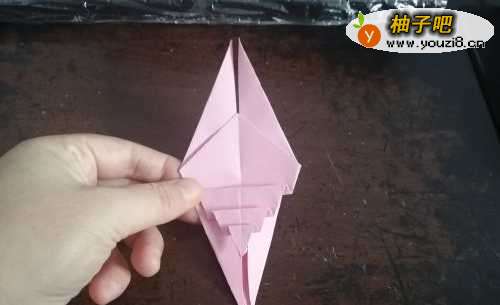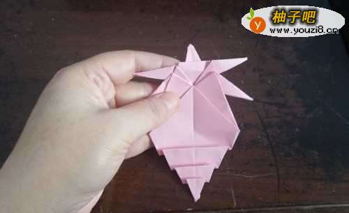 2把两侧的边向内折,后边的一样操作。我们把角打开把边向内折,如图二。后边的一样折好后,把边翻到一边,如图三。