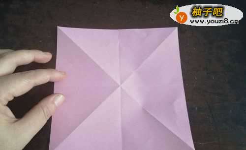 先把彩纸的中间折出米字形,再把折痕向内收起就成了图二的样子。