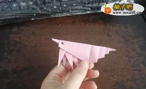 6我们把彩纸从中间对折,在头部画上眼睛就完成了。