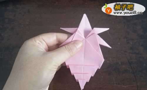 4另外的角也向外折,四只脚的位置交错开把中间的角向后折,如图二。