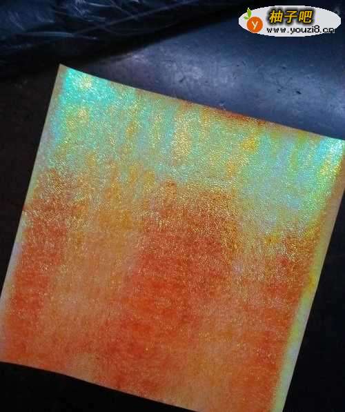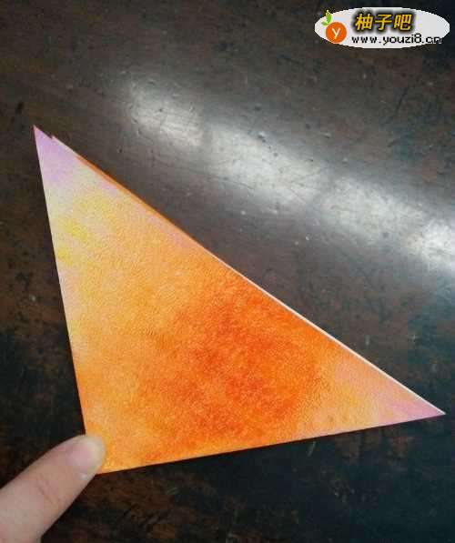取一张正方形纸(金色的最好,我选的是带有珠光的),先把彩纸沿对角线对折。