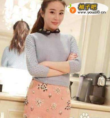 4简单的一款圆领毛衣,很有妈妈的味道。下搭配一条学院风格的深蓝色迷你短裙,散发着浓浓的学院风味。黑色坡跟鞋的搭配,拉长了腿部的曲线。