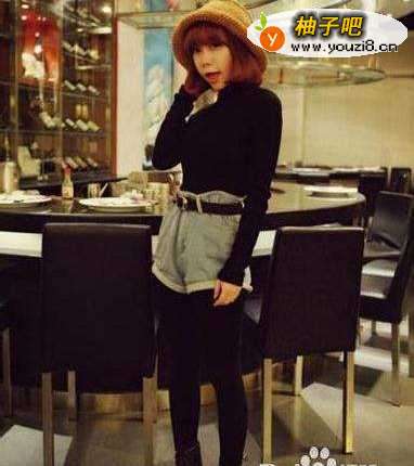 2黑色的高领毛衣似乎有些沉闷了,可是搭配上宽松的高腰款的牛仔短裤,再来一双马丁靴的搭配,很有范噢。外面再搭配一件开衫外套,立刻抢眼吸睛。