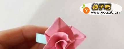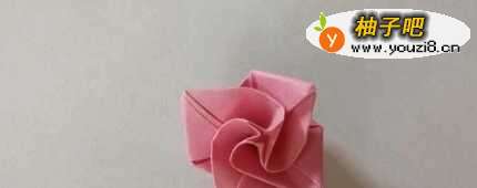 5然后翻面,折叠花芯。拧一下,整理一下花瓣,玫瑰花就做出来了。