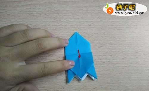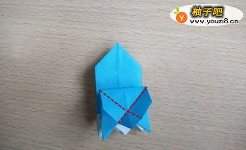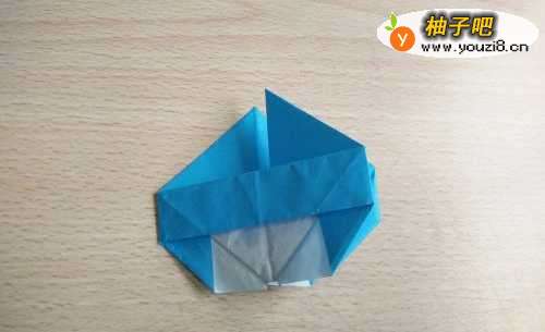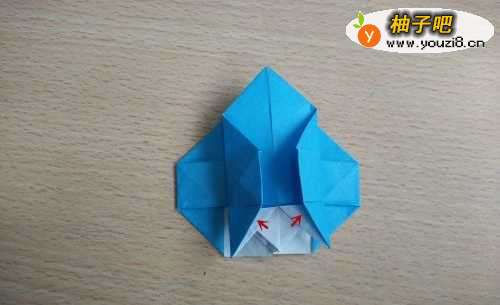 16翻到背面,将角往下翻折,然后将尖角折进去一点,再将左右两边的角折一点。