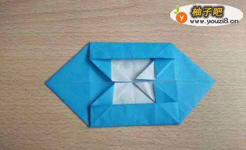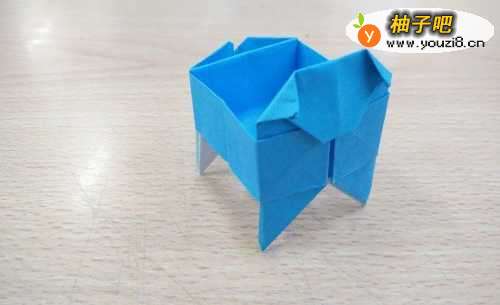 17折好了,将它撑开成一个盒子状,将尾巴拉正就大功告成啦。