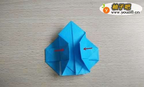 10将左右两侧分别折向中线,将下面两个三角形纸片往上翻折。