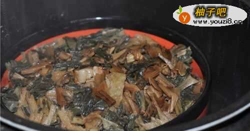 买上等的干菜,用开水泡发一小时。再清洗二四遍,直到把所有沙都清洗干净。再切成1厘米长的段,或更细也可以。