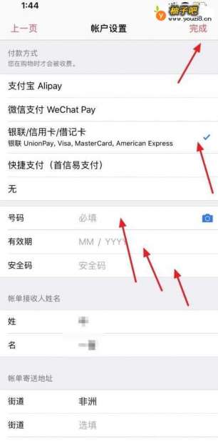 我使用的是信用卡,将卡信息输入下面框中后,点击 完成