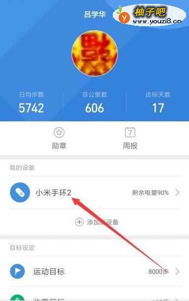 3在我的标签页面,点击中间的“小手米环2”快捷链接