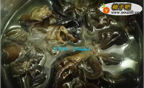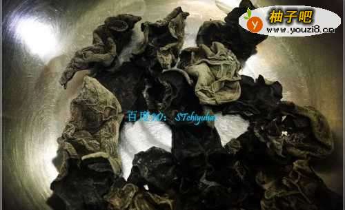 2木耳发泡后剪去蒂头,然后过水洗净,沥干备用。