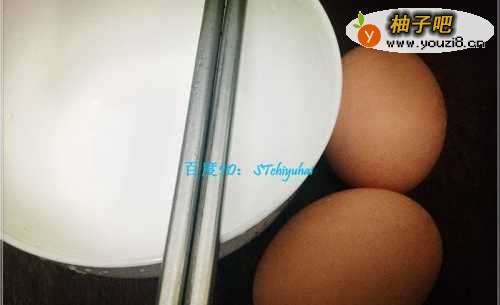 3准备两个鸡蛋,一个碗,一双筷子,将鸡蛋磕破倒入碗中,加少许盐打匀。