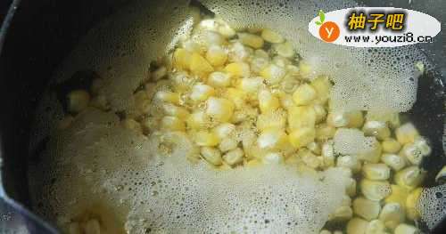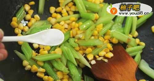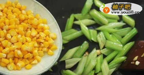 2将玉米粒和芹菜段分别放入开水中焯烫,芹菜焯烫完要立即过凉