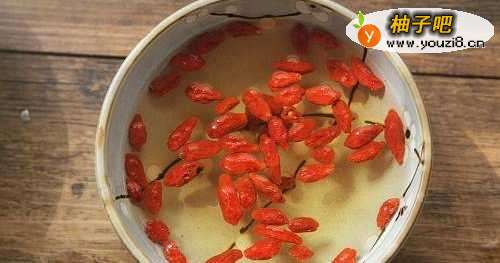 3枸杞清洗后用清水浸泡一会儿让其泡软