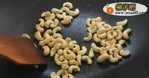 4热锅不放油直接放入腰果,小火慢慢的炒熟出香味后捞出待用