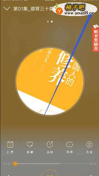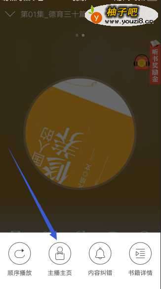 4接着到了播放界面,可以听到主播在读这本书,点击右上角的三个点符号。
