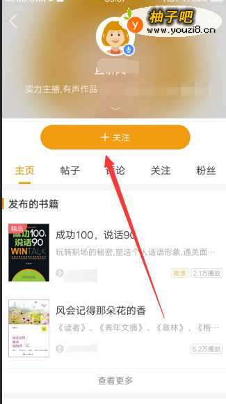 6来到主播主页,可以看到主播所有书籍播单情况,点击上方的关注按钮。点击后关注变为私信,说明关注成功。