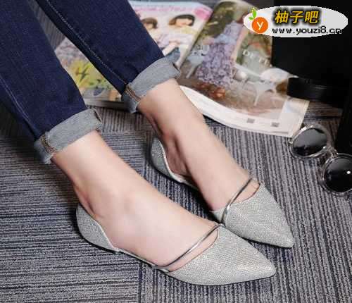 尖头侧面不包脚的款式单鞋,穿在脚上,特别的显脚小巧,秀气,搭配印花连衣裙尽显淑女气质。或者搭配包臀裙,小脚裤都OK的。