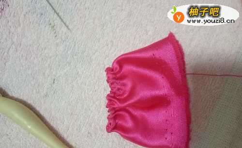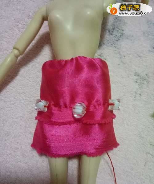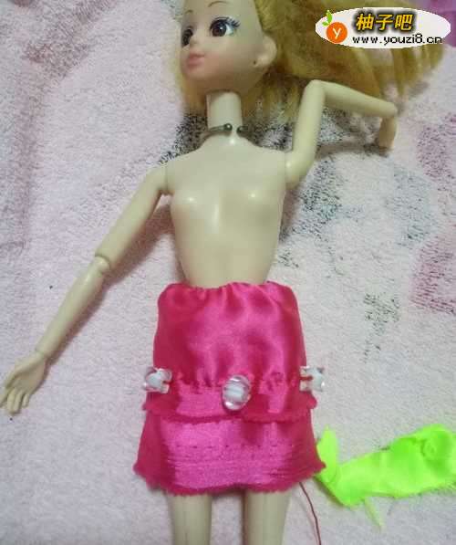 9就圈缝好后,套到芭比娃娃的身上的效果